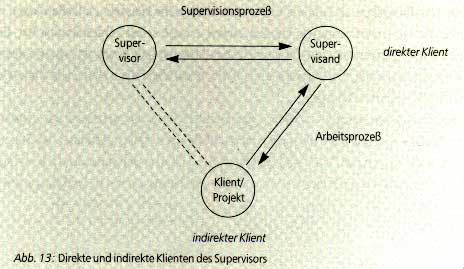 Obwohl die Supervisandin direkte Auftraggeberin für die Supervision ist, ist auch der Klient der Supervisandin indirekt Klient des Supervisors.